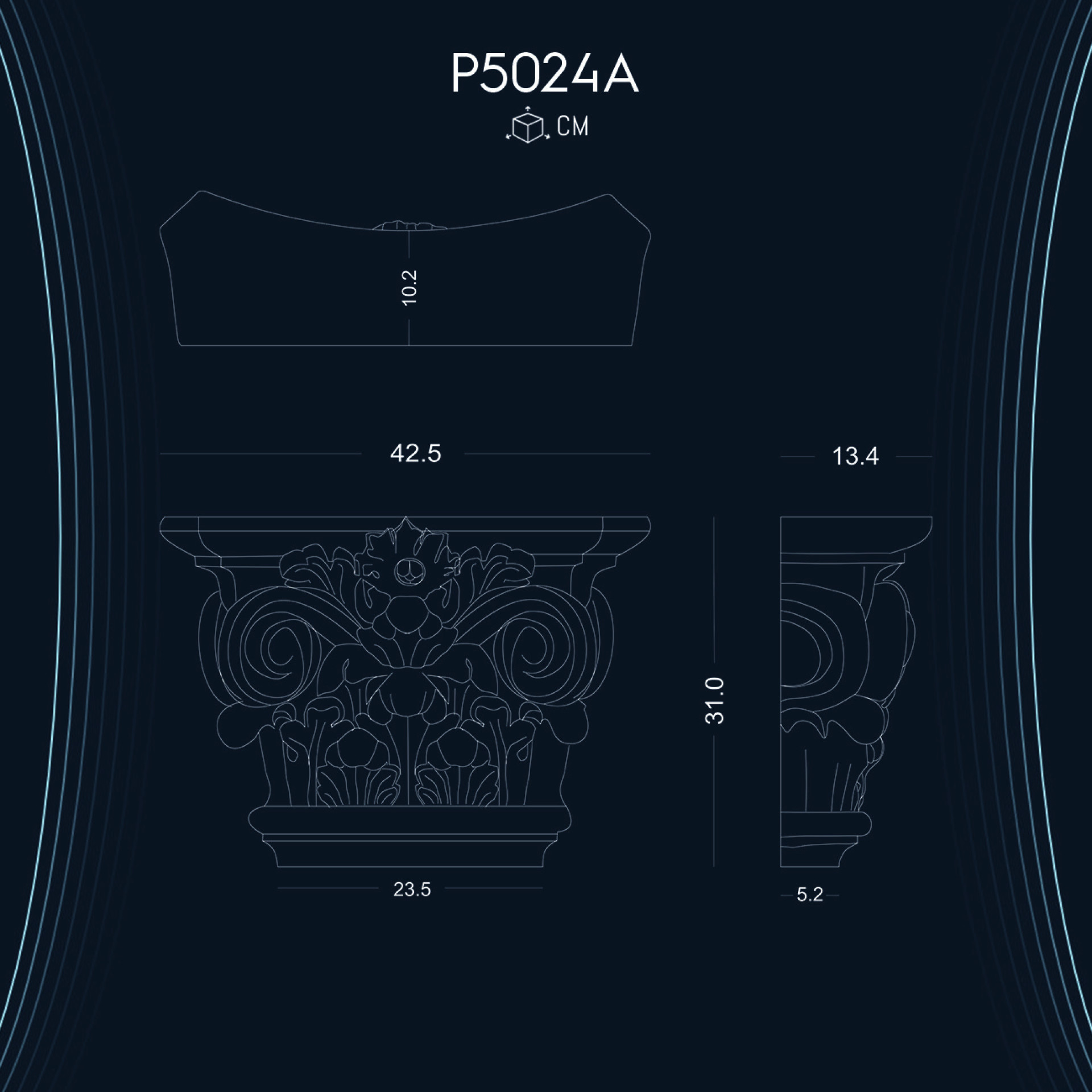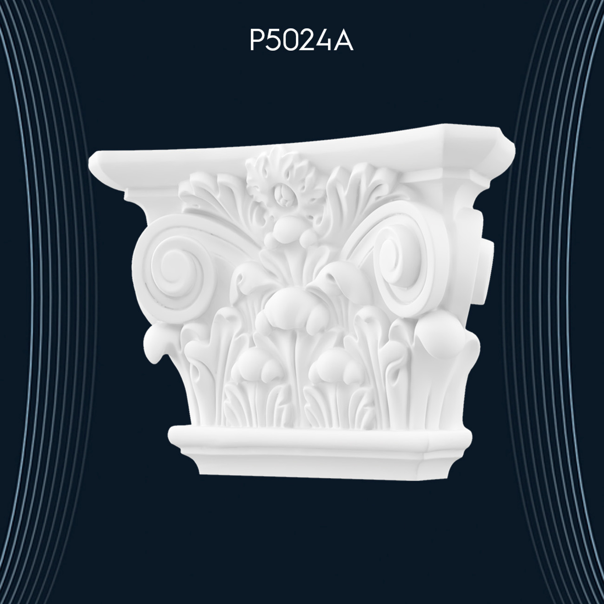 Poliüretan Pilaster Sütun Başlık P5024A, hem Dor İyon hem de Korint sütunlarıyla mükemmel bir uyum sağlayarak mekanlarınıza estetik bir dokunuş katmaktadır. Dayanıklı yapısı ve şık tasarımı ile her türlü mimari projede tercih edilebilir.