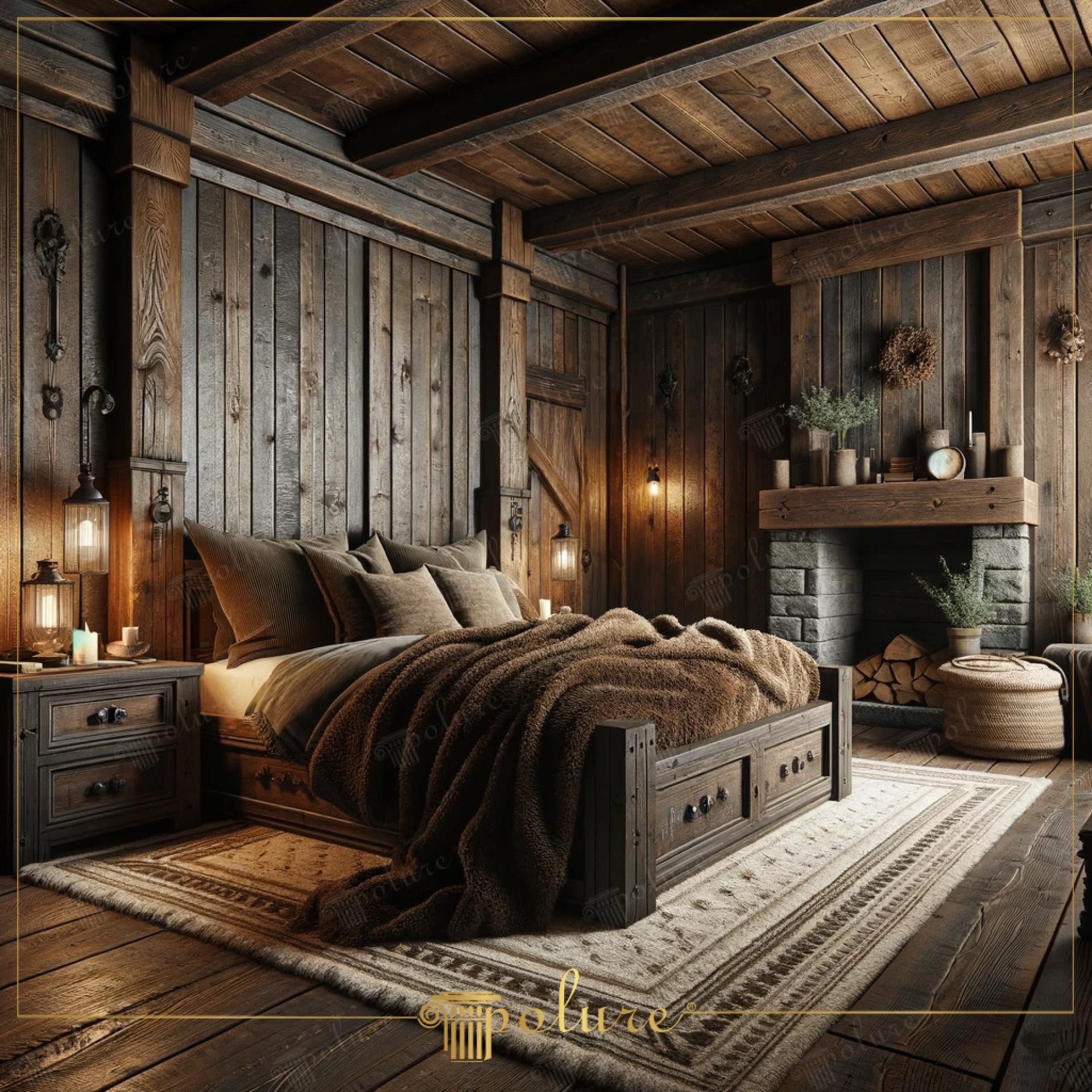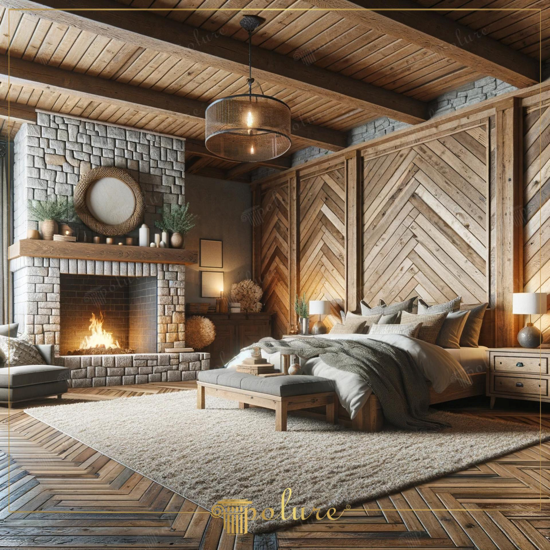 Poliüretan Doğal Dokunuşlar ile Modern Rustik Yatak Odası Tasarımı: Kiriş ve Kütük Merteklerle Şık Dekorasyon Fikirleri ve Örnekleri