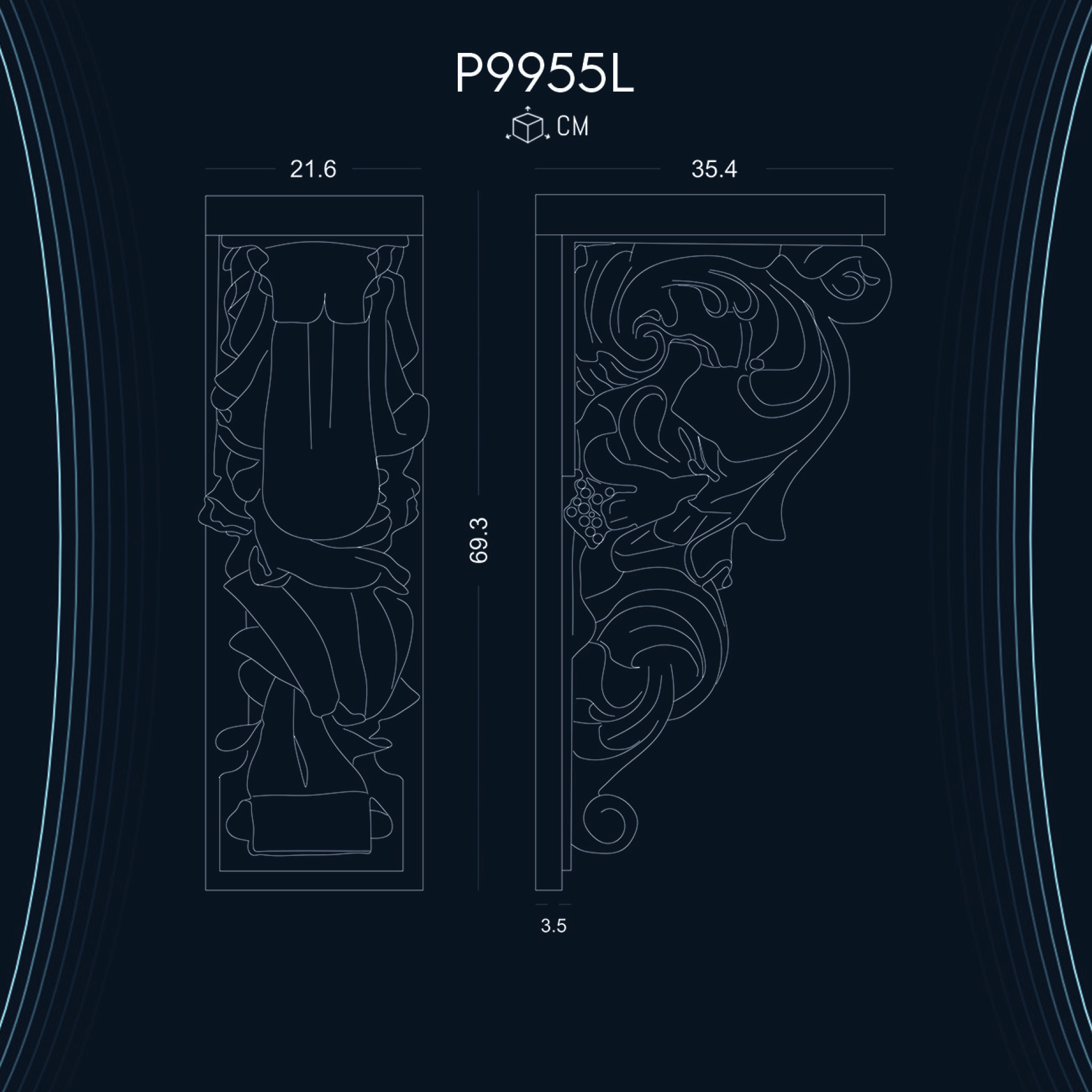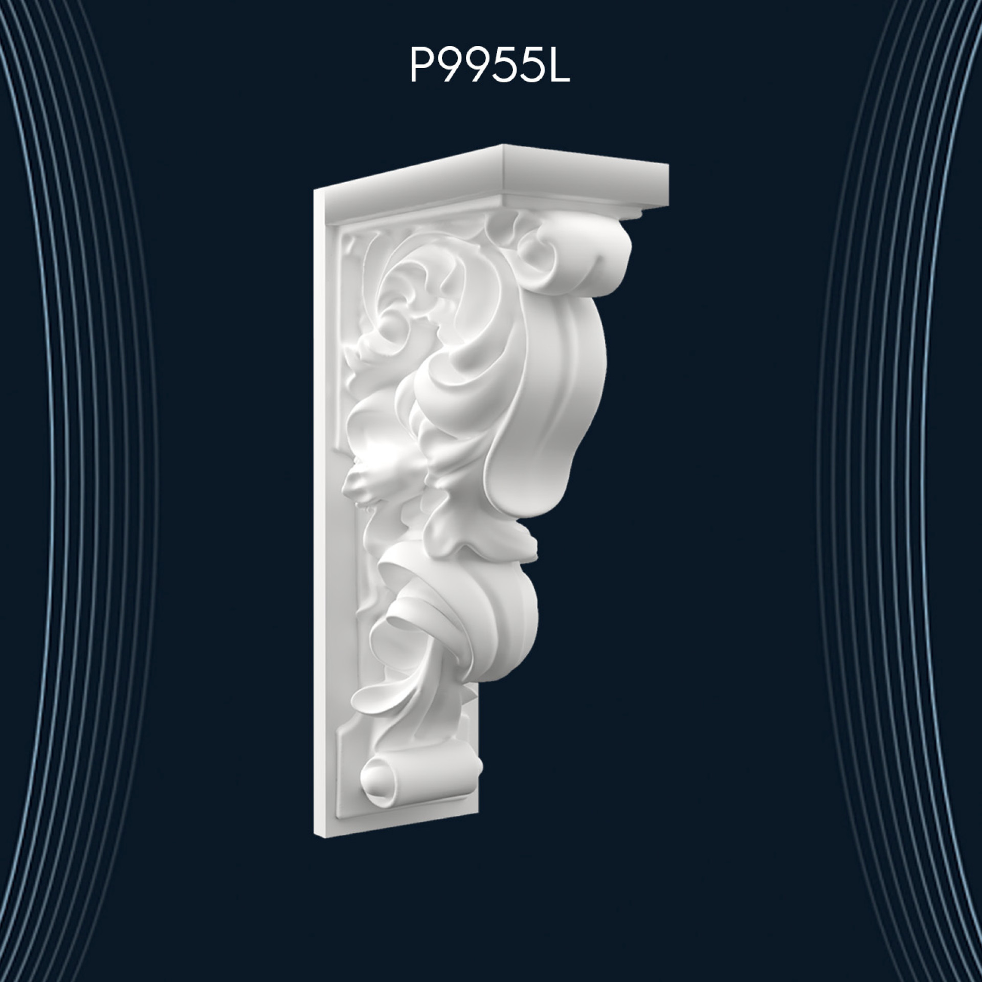 P9955L modeli, tavan süslemelerinde etkileyici bir görünüm yaratır. Tavan köşelerine veya ortasına yerleştirerek mekana derinlik katabilirsiniz.
