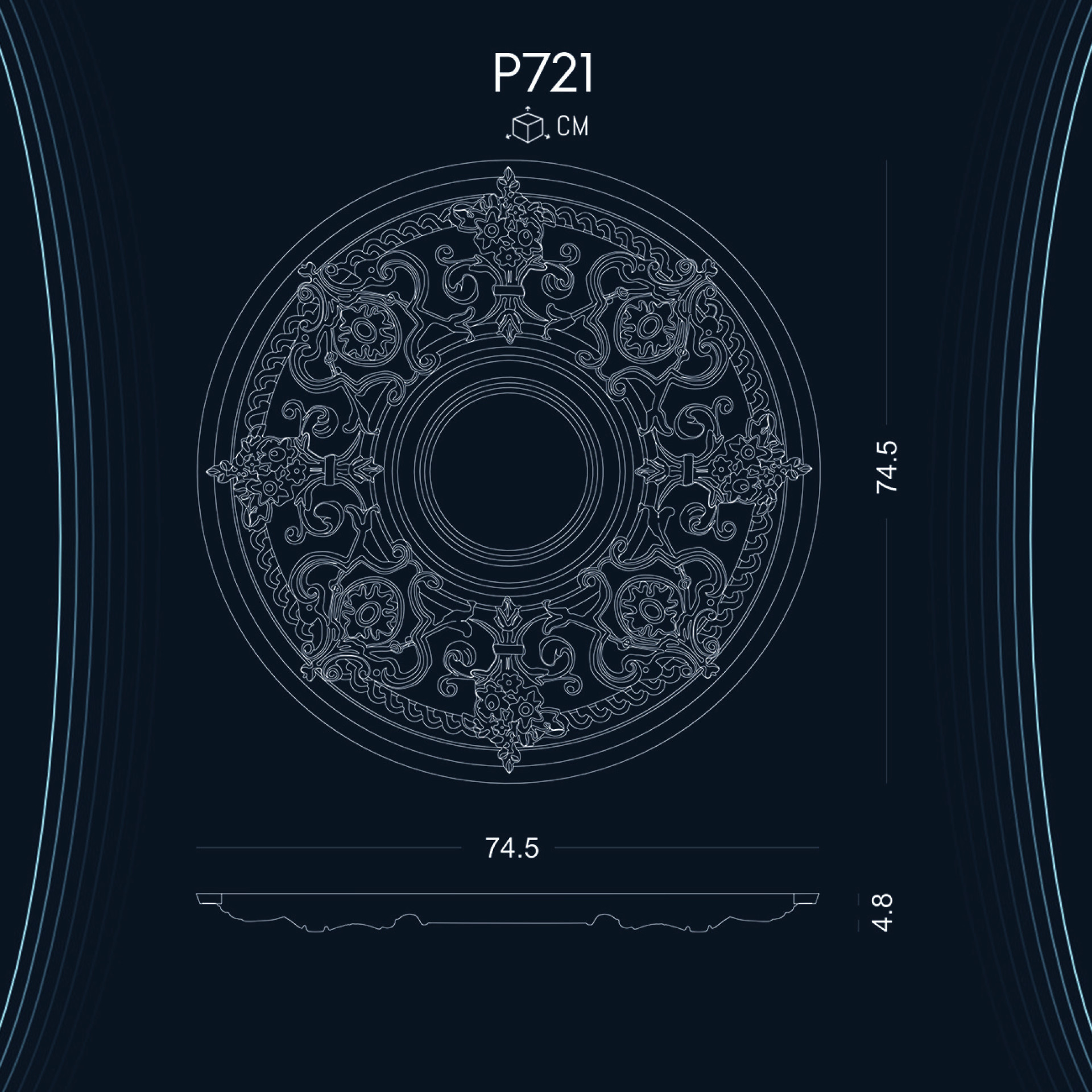 P721 poliüretan tavan göbekleri ve rozetler, mekan dekorasyonunda estetik ve işlevsellik sunmaktadır. Farklı stillere uyum sağlayabilen bu ürünler, her türlü mekan için mükemmel bir seçenek oluşturmaktadır.