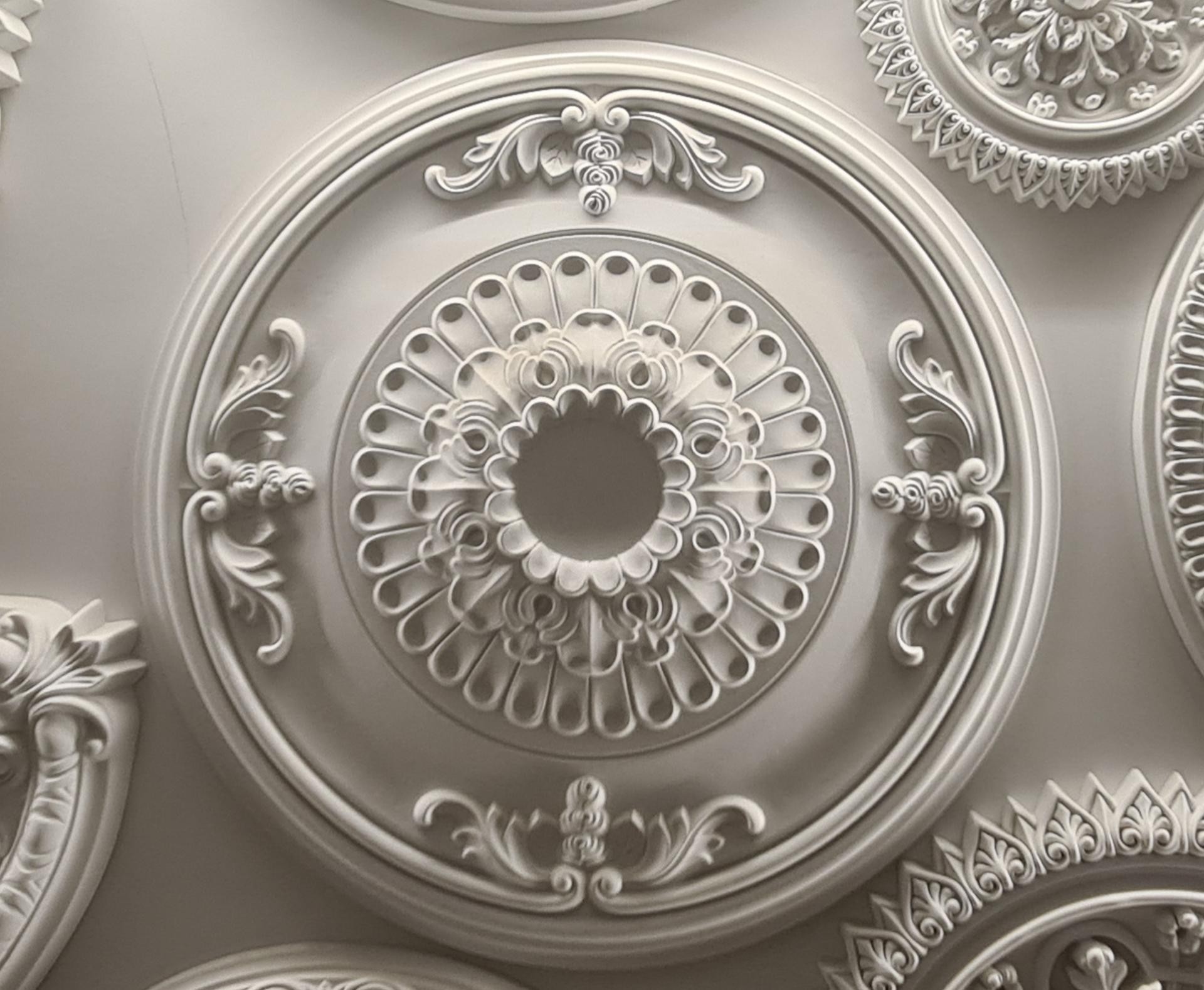 Klasik mobilyalarla bir araya getirildiğinde, P7152 tavan rozetleri mekana zarif bir hava katar. Özellikle altın ve gümüş detaylarla zenginleştirildiğinde etkileyici bir görünüm elde edilir.