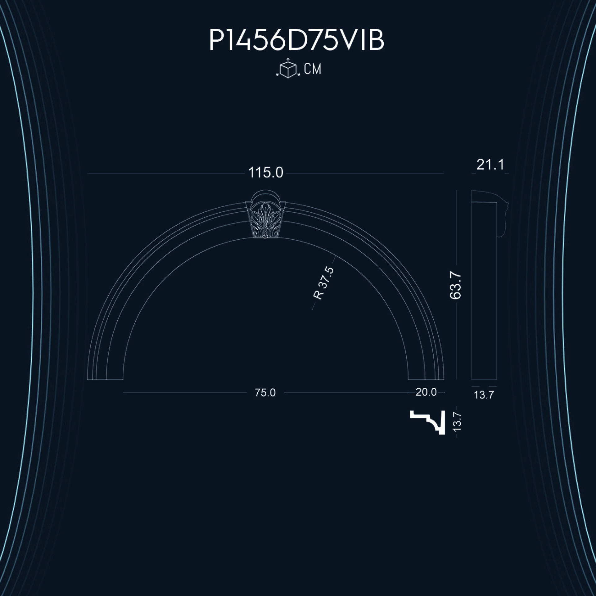 P1456D75VIB ile aynı ölçü ama farklı tarzlarda olan kavisli kemer modellerimizdir.