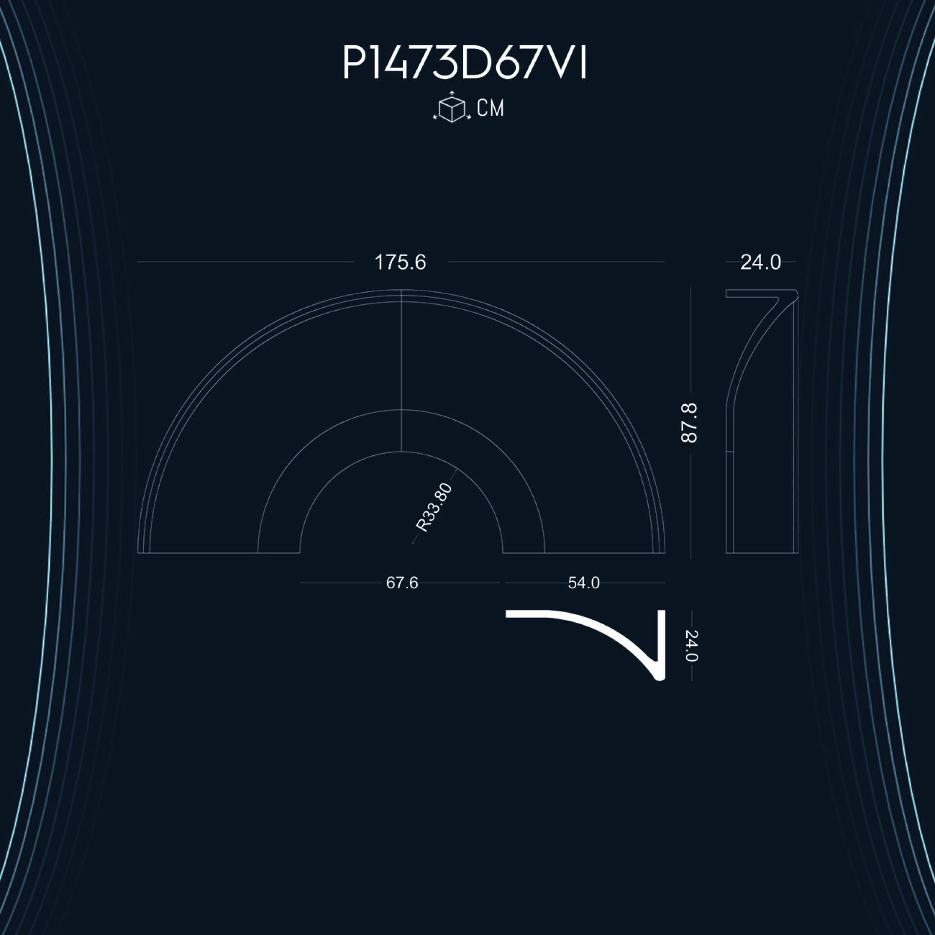 P1473D67VI 67cm lik kapı pencere kemer için radiüslü tac