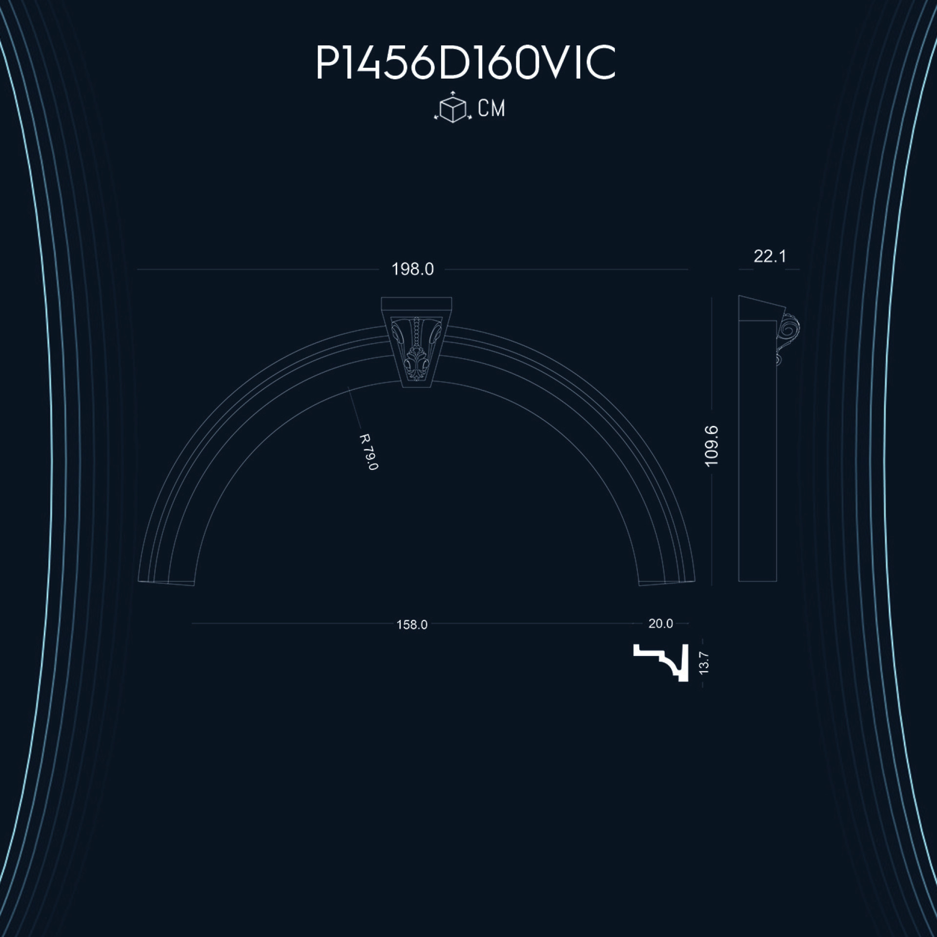 P1456D160VIC ile aynı ölçü ama farklı tarzlarda olan kavisli kemer modellerimizdir.