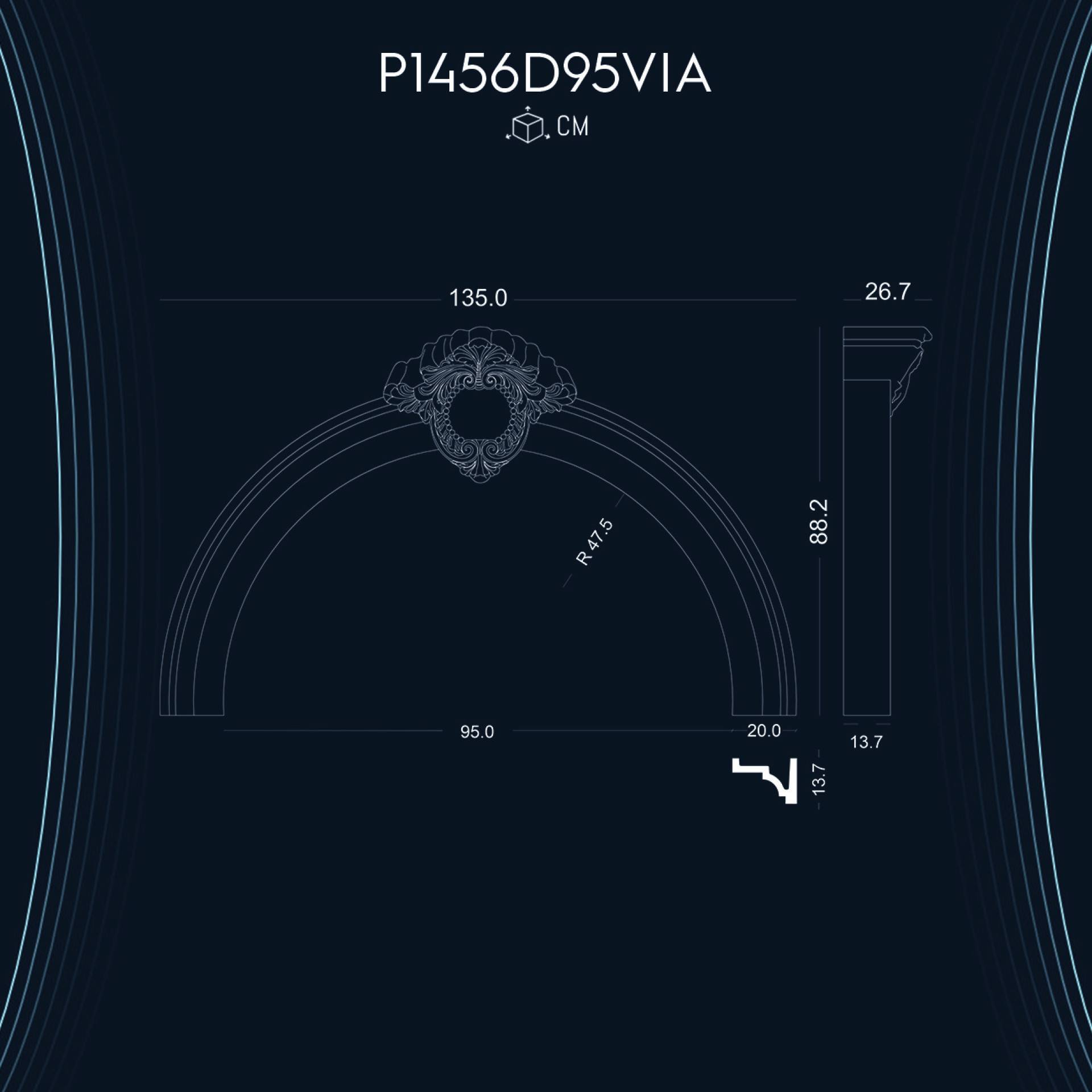 P1456D95VIA ile aynı ölçü ama farklı tarzlarda olan kavisli kemer modellerimizdir.