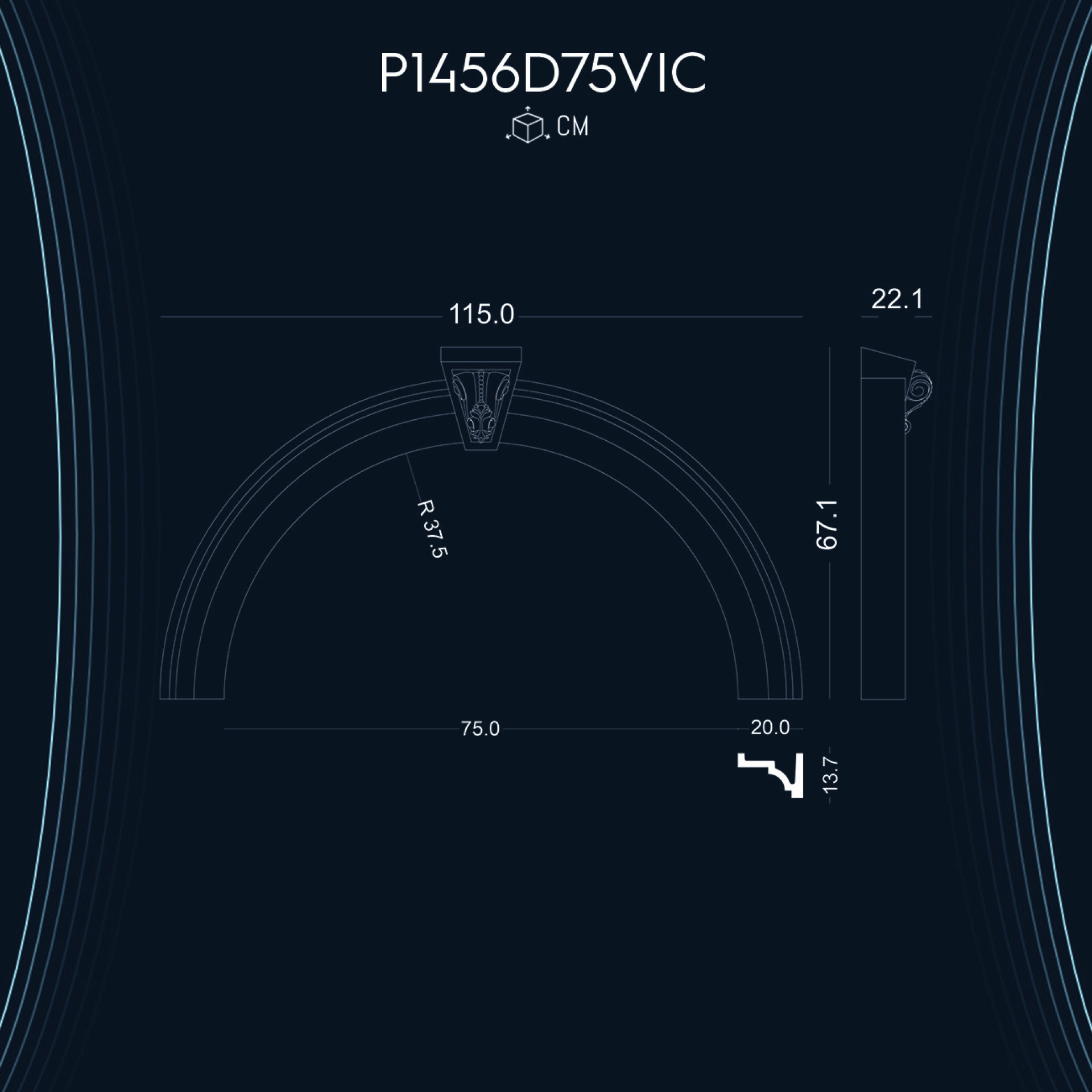 P1456D75VIC ile aynı ölçü ama farklı tarzlarda olan kavisli kemer modellerimizdir.