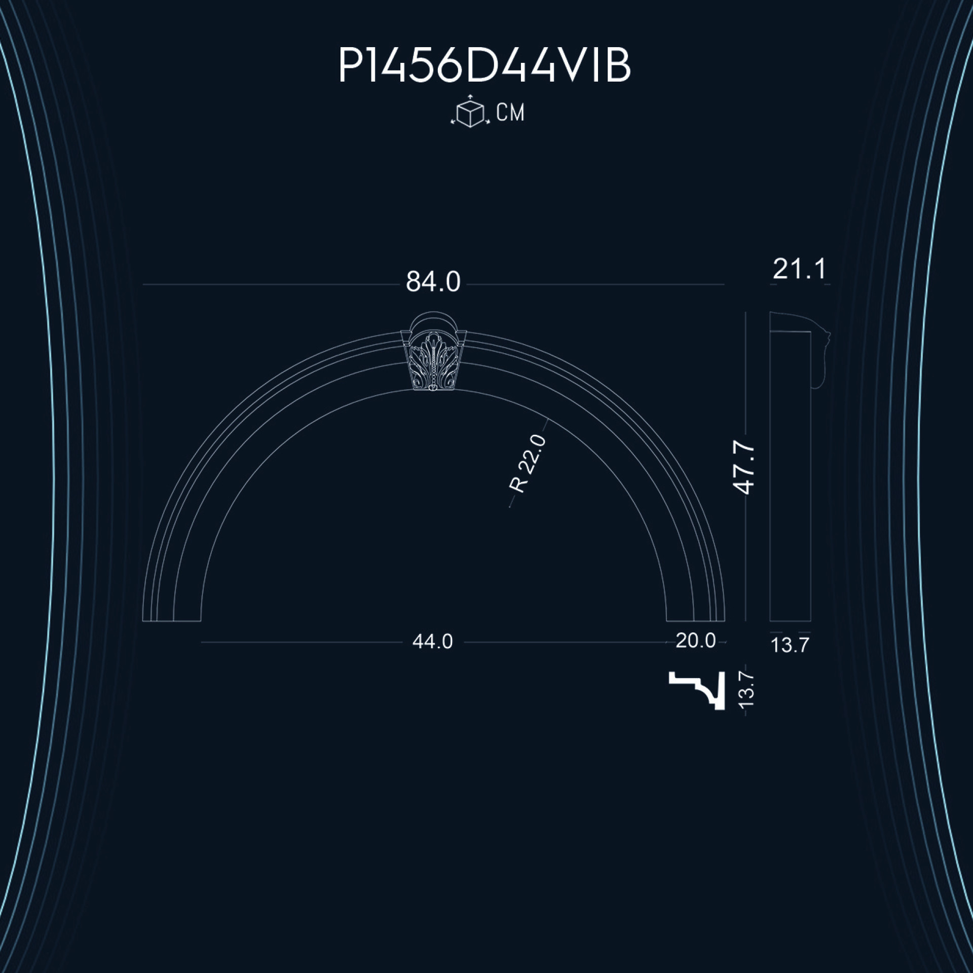 P1456D44VIB ile aynı ölçü ama farklı tarzlarda olan kavisli kemer modellerimizdir.