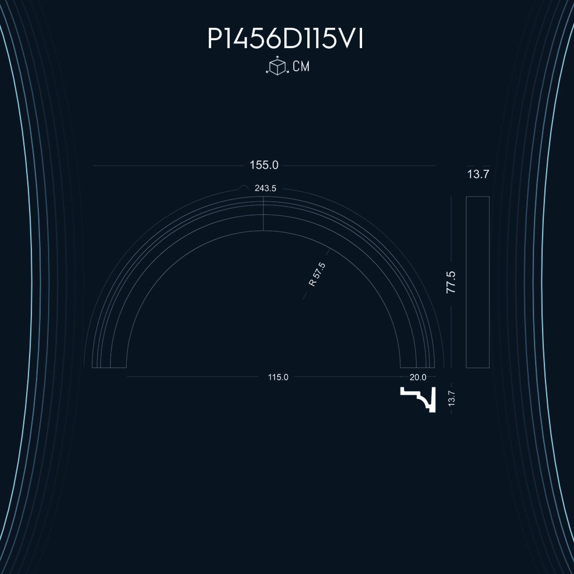 P1456D115VI ile aynı ölçü ama farklı tarzlarda olan kavisli kemer modellerimizdir.