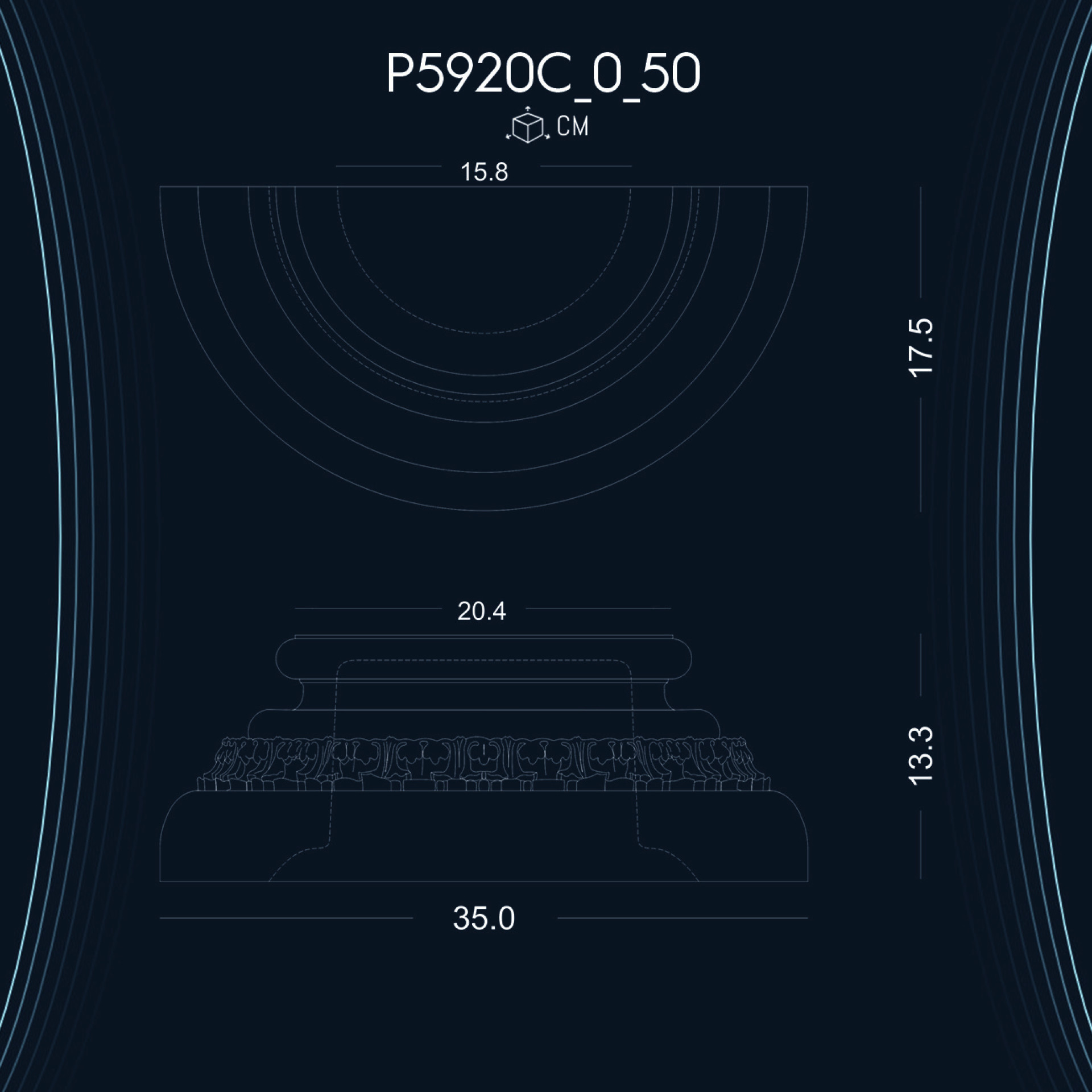 20 cm çapındaki P5920C desenli alt kaidesi ile uyumlu sütun başlığı modelleri.
