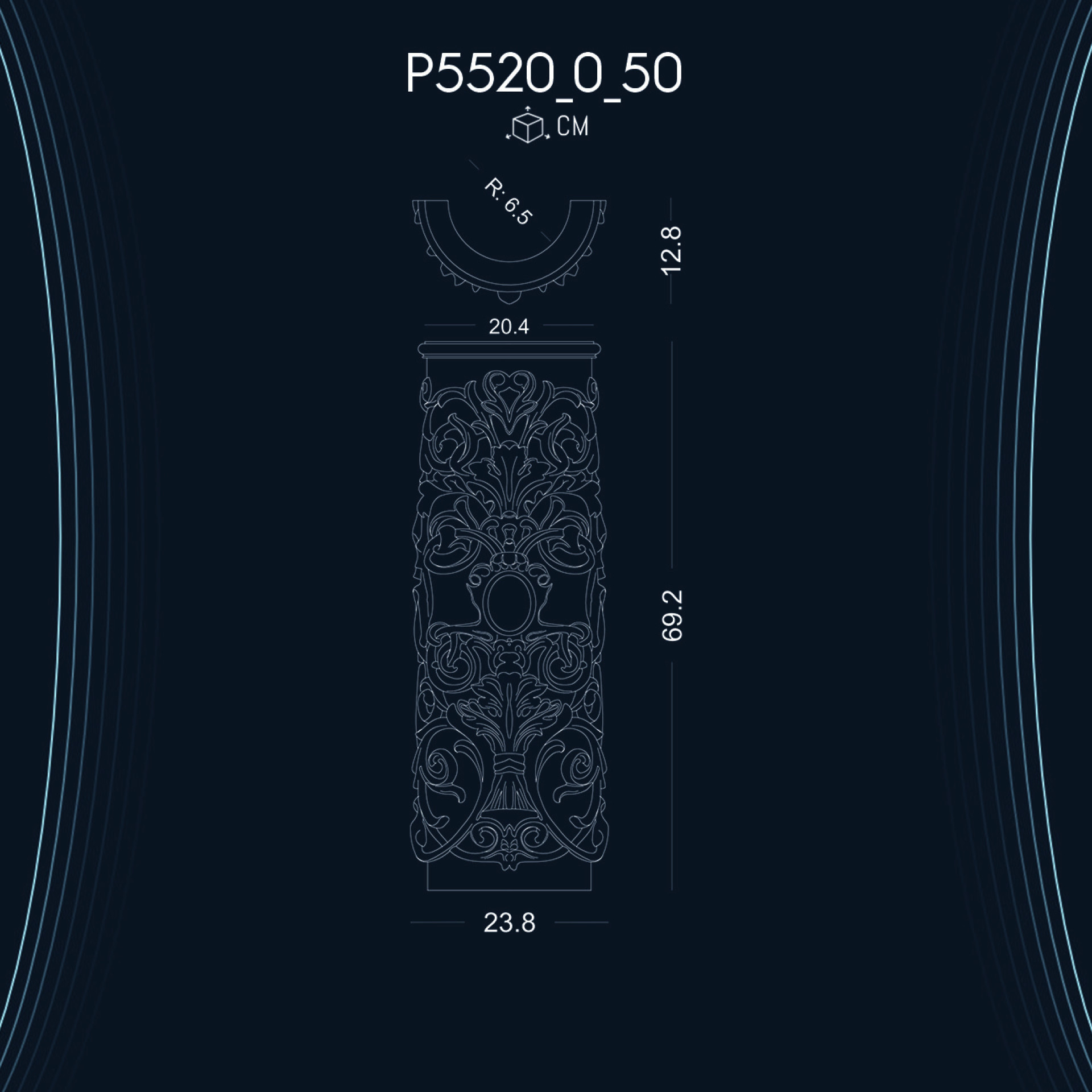 İyon sütun başlığı, klasik ve modern tasarım unsurlarını bir araya getirerek mekanlarınıza zarif bir dokunuş katar. P5520_0_50 modeli ile birleştiğinde, aşağıdaki avantajları sağlar: