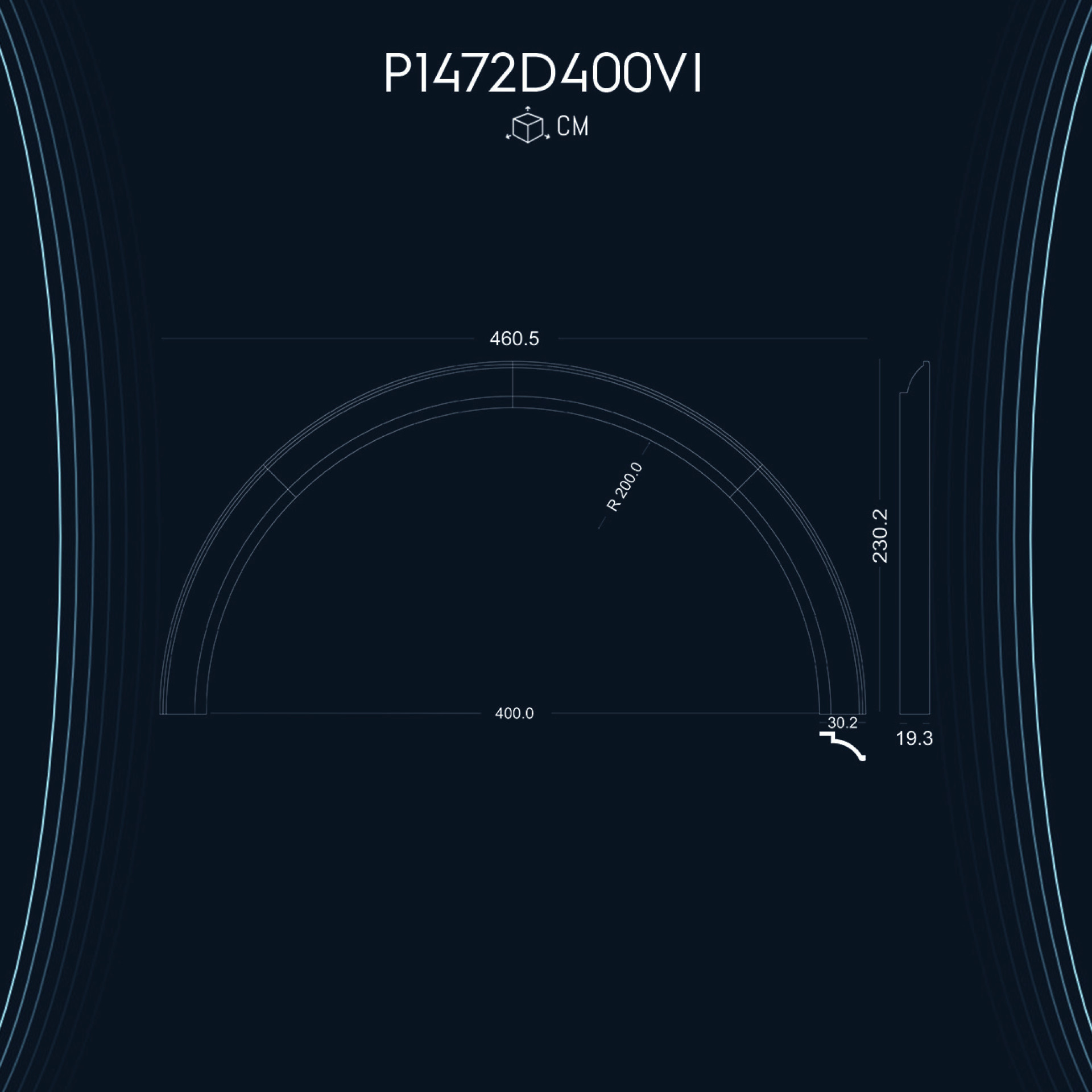 P1472D400VI 400 cm lik kapı pencere kemer için radiüslü tac